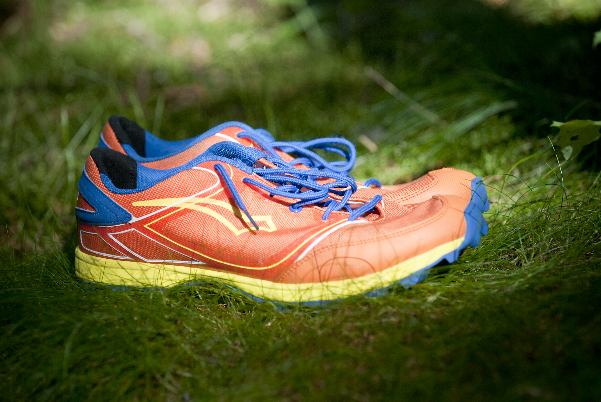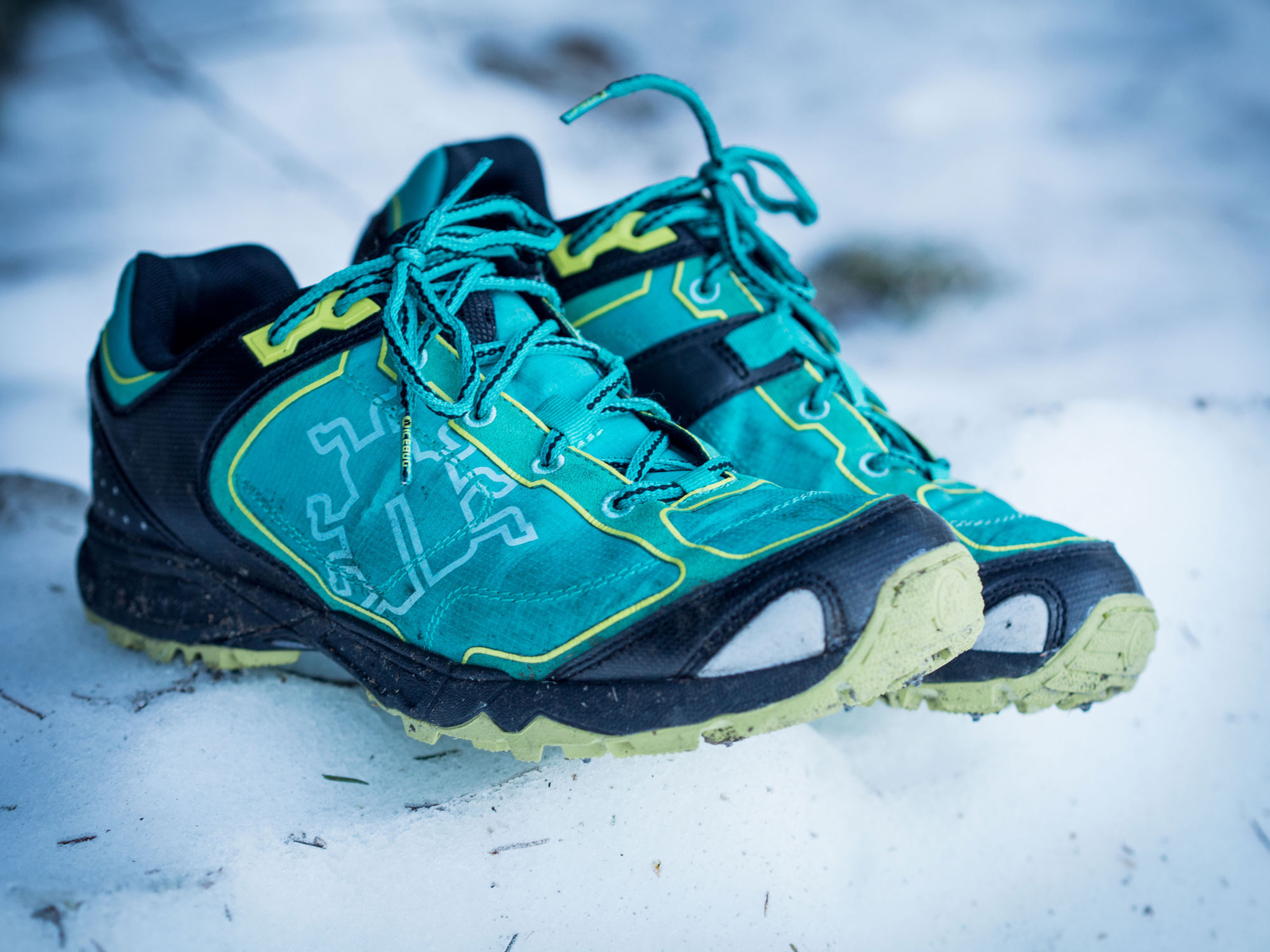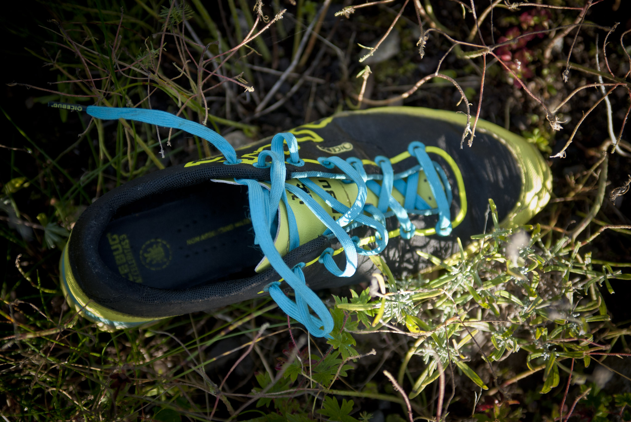 Acceleritas3 är precis som Spirit2 en rätt smal och ”race” formad sko, med en lite spretig tå. På min fot sitter skon riktigt bra. Jag drar 42 vilket enligt mig gör den ”true-to-size”. Jag har alltid upplevt Spirit2 som något mindre. Innersulan är tunn och sitter limmad i skon. Hälkappan är mellanhög och ger ett bra hälgrepp utan att trycka på hälsenan. Runt hela skon går ett grövre tyg som verkligen gör sitt för skons hållbarhet. Pinnar och liknande göre sig icke besvär! Snörningen är också bra. Hålen sitter på lagom avstånd från varandra till skillnad på Spirit2 där det på ett ställe gav upphov till ett veck i tyget som under skons inspringningsperiod irriterade min fot. Inget sådant här, bra Icebug! Snöret behöver, som så många andra, en dubbelknut för att sitta säkert. Ett knöligt snöre typ Xtenex skulle göra susen i många skor..
