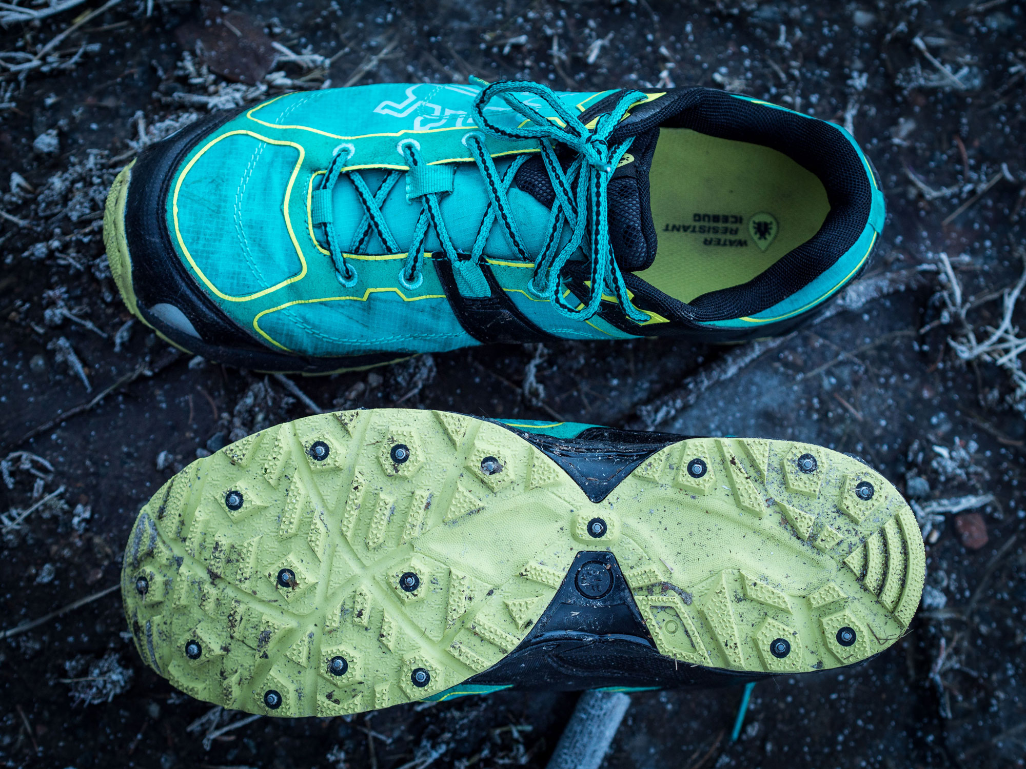 Det har gått över två år sedan jag skrev om Icebug Spirit2 OLX, en sko jag hyllade för egenskaper som grepp, respons och rå funktionalitet. Årets modell heter Icebug Spirit4 OLX. Vad har hänt på två år? Ja, fast skon behållit samma form och läst så finns det faktiskt en hel del nytt under ytan. Mellansulan är uppdaterad redan i Spirit3, ESS-stabilisatorn är också bättre. Yttersulan är densamma med 14 fixerade OLX dubbar i karbidstål. På gränsen till outslitliga och numera bra fastsatta i sulan. Mönstret är Icebugs klassiska traktormönster som bevisligen fungerar i de flesta lägen. På ovandelen har det hänt en del. Materialen är uppdaterade och man använder en ”stick-and-turn” teknik för att få bort sömmar från utsatta delar av skon. Hälkappan är också omarbetad och har nu samma form som Acceleritas4, en välkommen nyhet för alla som har känningar i hälsenan. Plösen har fått en lätt stoppning och snörningen är smartare, bättre fördelad.