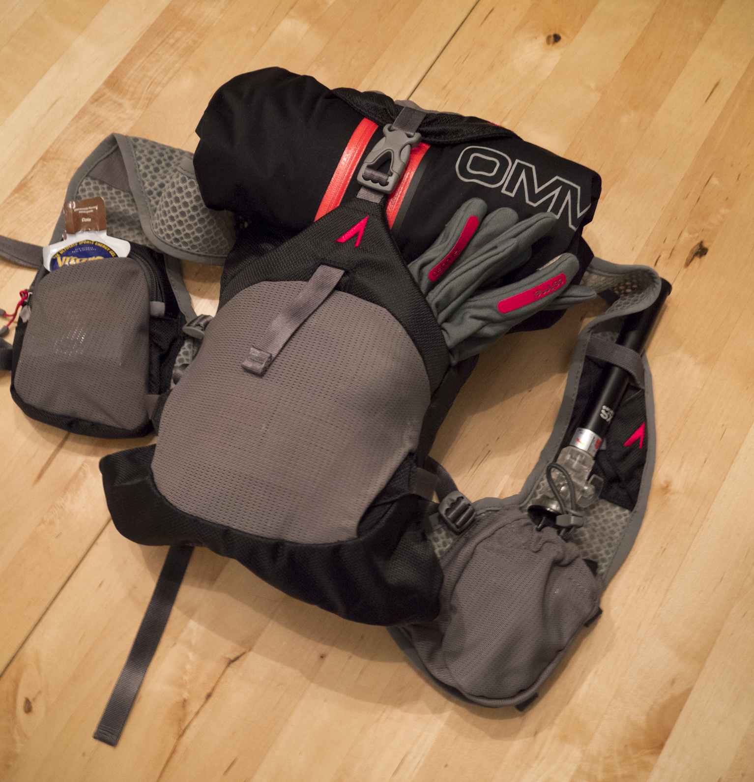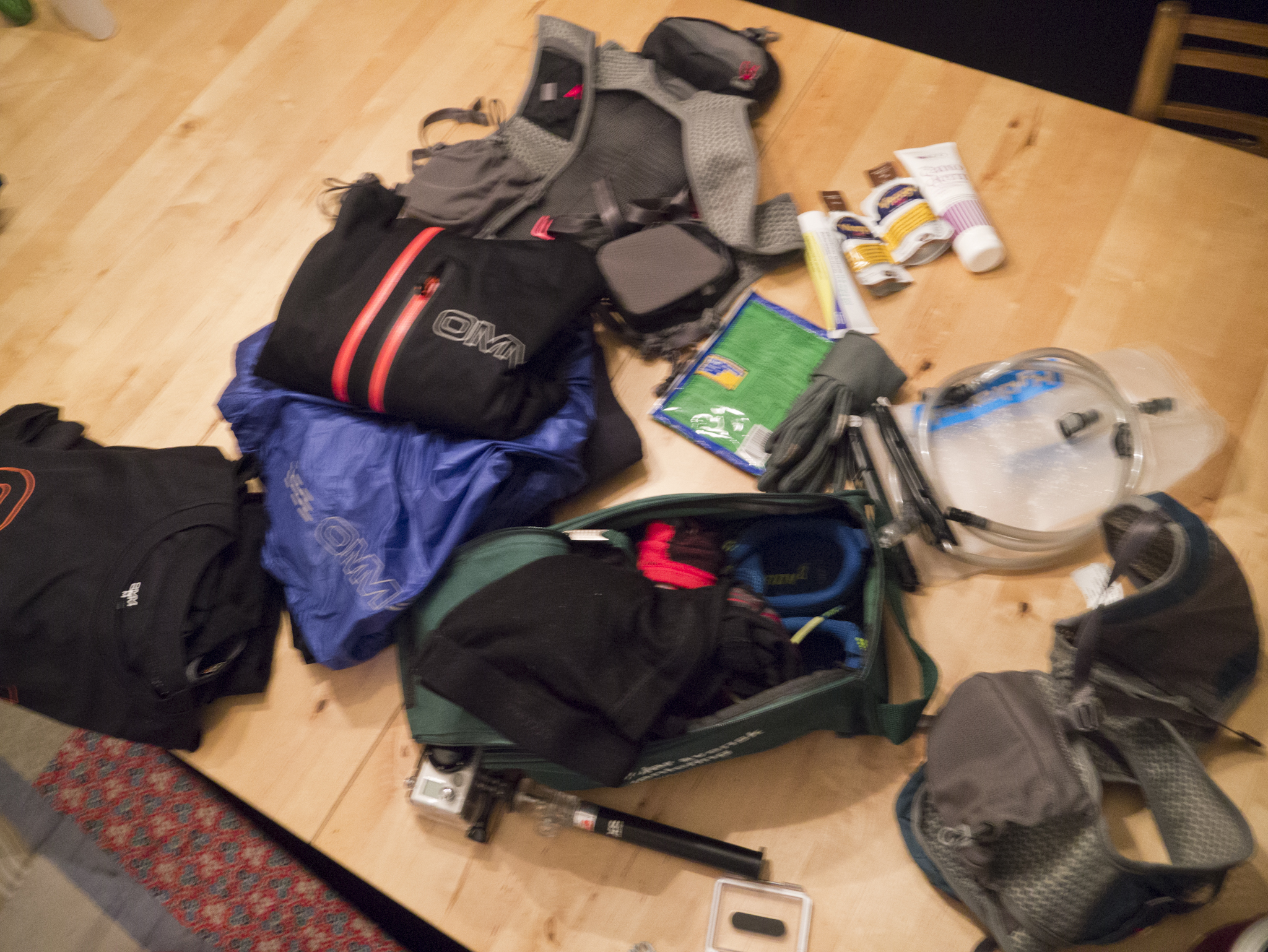 Tiden går fort. På lördag, 140809 är det dags för AXA Fjällmaraton i Vålådalen. När jag anmälde mig hade jag storslagna planer om strukturerad träning och maximal prestation. När jag sprang sist, för två år sedan, linkade jag ju in på ca: 5:17 med stukad fot efter 9K.. Verkligheten är ofta en annan än man tänkt sig. På lördag blir också min lilla son Bror 6 månader. Nu i efterskott är det svårt att förstå hur jag tänkte mig få ihop träningen.. Springa ska jag i alla fall. Ovan syns den utrustning jag tänkt mig. Närmast kroppen kör jag Skins A200. Jag har vant mig med lagom kompression kring låren och då börjat köra dessa som kallingar helt enkelt. Över blir det klubbshortsen från Inov-8. Alla som dissar tights + shorts, kör så ett par vändor så ska jag lyssna på vad ni säger då.. Strumpor blir TEKO SIN3RGI, merion- & Evapormix i reko förpackning. Jag kommer, om inte vädret blir att för dåligt, springa med UltrAspire Spry, världens smidigaste löparväst. Den väger så lite och sitter så bra att den inte märks. För att få med all obligatorisk utrustning och ändå få plats med blåsa så har jag moddat den lite med band på utsidan. På så sätt får jag dit en DRYBAG på 1L där uderställströja från Craft (exterme på 100g), första förband, kompass och visselpipa får plats. Jag gillar att ha med en drybag, denna väger 20g och håller regn borta. Blåsan är Ultraspires 1L. Jag har satt på Hydrapaks nya munstycke helt enkelt eftersom jag vill testa det. Jag tar också med UltrAspire Cup, som kåsa. Den väger typ inget.. Jag kommer ha på mig ett linne från Craft också.. Vindjacka blir nog MontBell Tachyon Jacket. Den väger 45g och gör ett grymt jobb när det behövs. Skulle det regna ordentligt tar jag nog med mig MontBell Versalite Jacket eller The OMM Kamleika Smock. Grymt bra regnjackor för Offroad-löpning. Jag tänker bara ha med GU Chomps att knapra på. Det är gel fast i godisform. Jag gillar verkligen att få något i magen när jag springer. Godis är bättre än Gel & konstig dryck.. Annars så brukar stationerna vara så välutrustade med bra käk att det räcker med lite godis mellan dom. Nummerlappen brukar jag sätta på ett skärp. Pannbandet är ett tunt från Puma. Kan behövas om det blir svettigt. Jag kommer också ha med min GoPro 3+ på kort stav. Antar att det blir en RR i form av film efteråt.