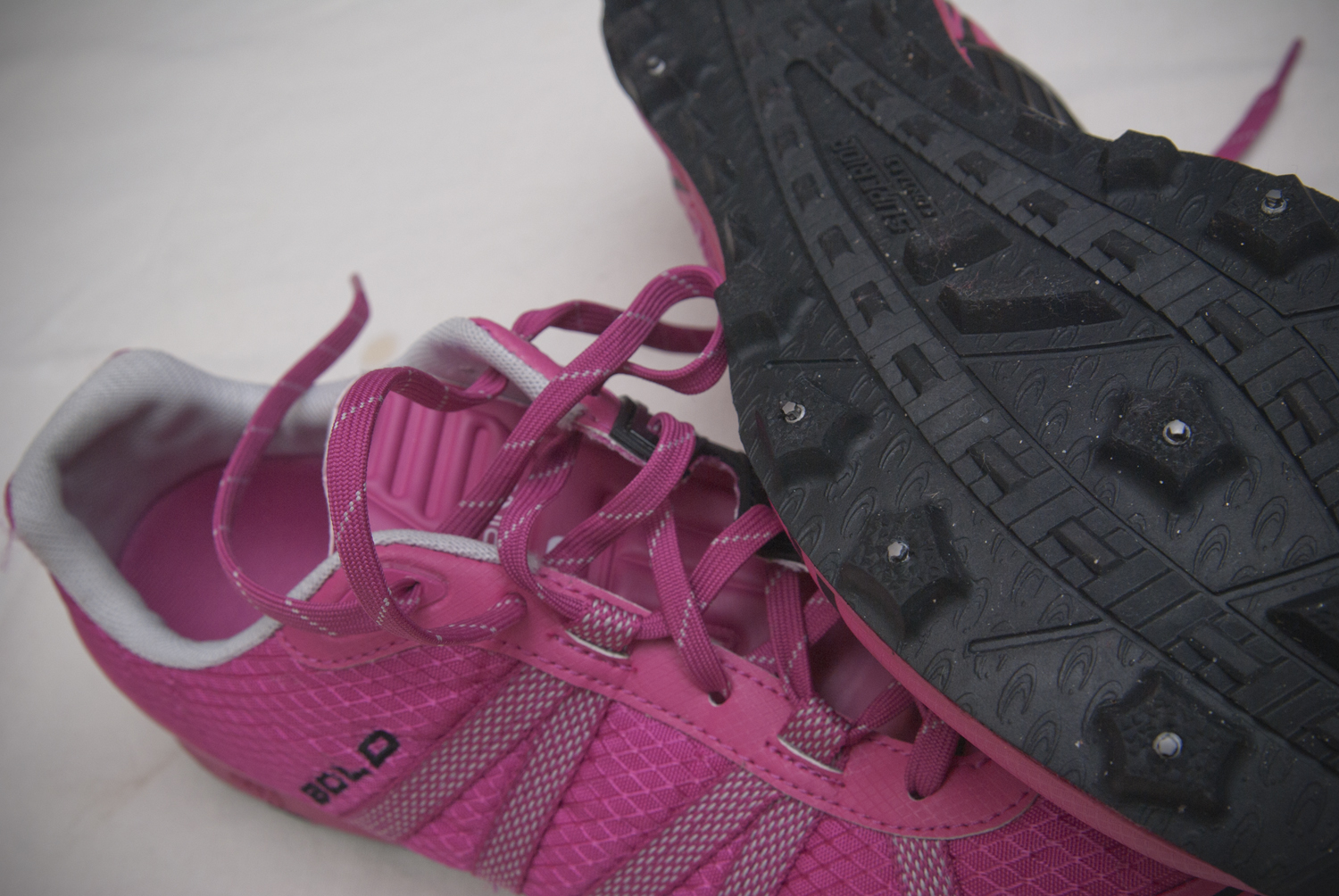Den svenska vintern är nyckfull. Snö och tö om vart annat! Vägar och stigar är ofta riktigt hala. I Norrland är dubbdäck på bilen ofta en förutsättning för att ta sig fram. Dubbar på skorna gör dig ännu lyckligare! Jag har sprungit i finska orienteringsskon VJ Bold Pink!